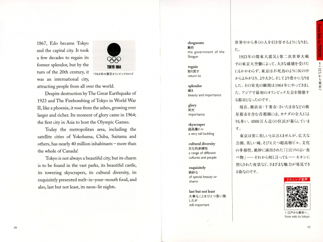 英文の対訳が書かれています。まず通して読み、内容を理解してから、段落ごとに英文とつき合わせて読んでみましょう。