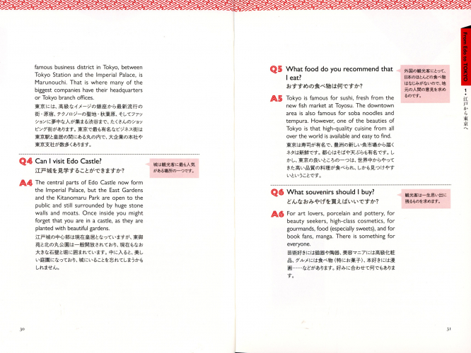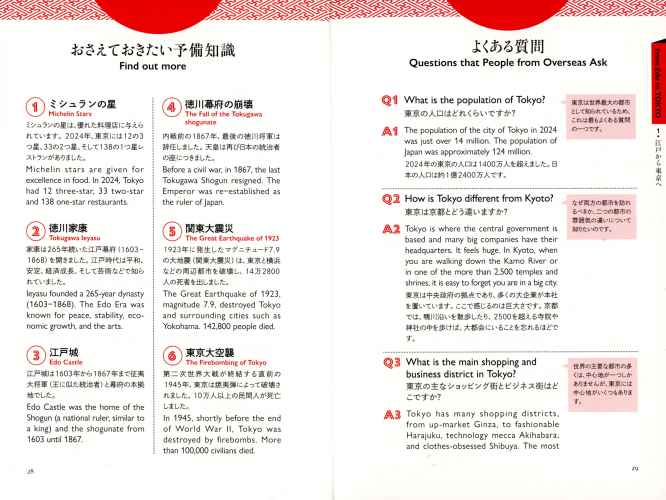各テーマに関連した内容で外国人がよく質問すること、疑問に思うことをQ&A形式で紹介しています。英語と日本語の両方で記載しています。