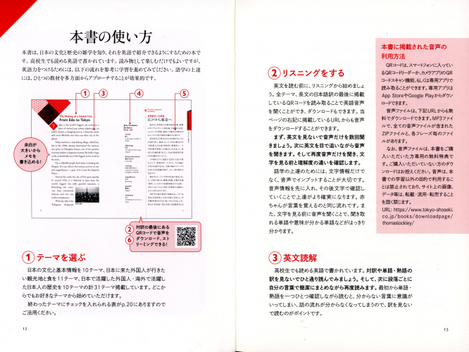 英文を読む前に、リスニングから始めましょう。全テーマ、長文の日本語訳の最後に掲載しているQRコードを読み取ることで英語音声を聞くことができ、ダウンロードもできます。当ページの右記に掲載しているURLからも音声をダウンロードすることができます。